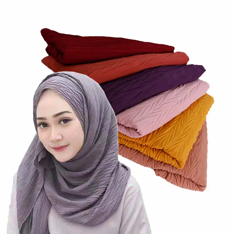 New Style Plain Pleated Bubble Chiffon Hijab Scarf Crinkle Shawl